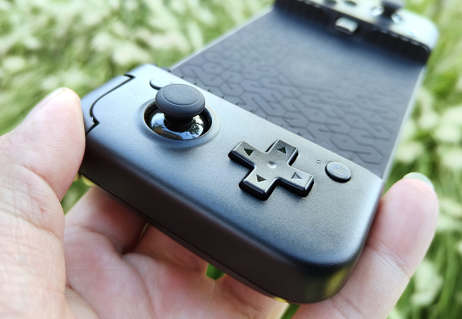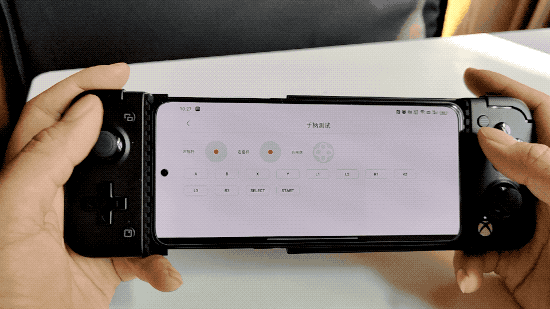 按键布局采用XBOX模式,左右双摇杆,还有方向键和ABXY按键,宽度和普通手机差不不多。