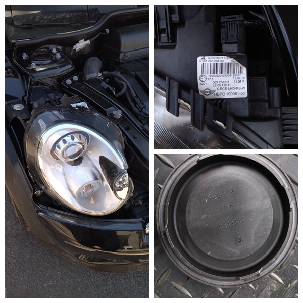 让我们来证实一下,右前大灯标签上的制造日期是2012年4月,虽然跟车辆出厂时间一致,但是大灯内盖上还有一个日期,2010年10月,这差距就很大!猜测这标签是后贴的,而且大灯的固定螺丝也做过喷漆处理,漆的颜色和正常螺丝存在色差,所以这个大灯绝对换过!