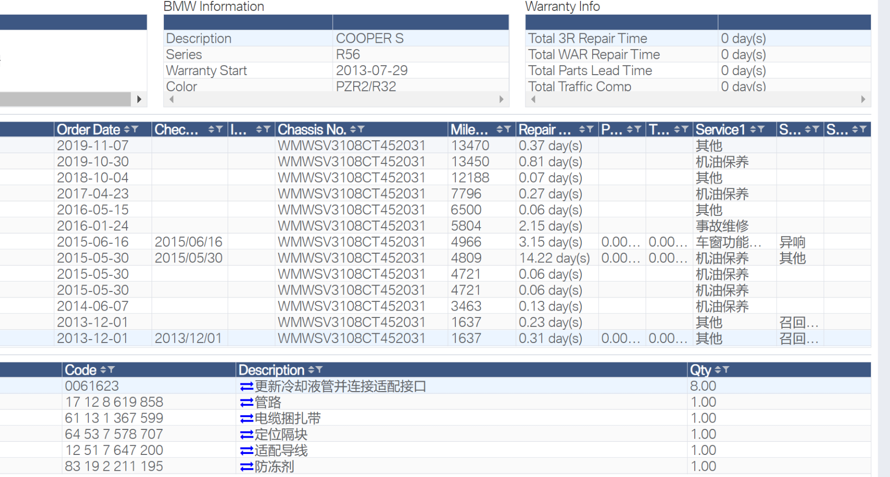 从后台发来的维保资料来看,这台MINI是全程4S店保养,上面只有一次事故记录,具体维修内容不详!上面还有公里数的完整记录,到19年11月的时候才跑了1万3千多公里,按照之前的用车频率,可见推断这台车确实没有调表!