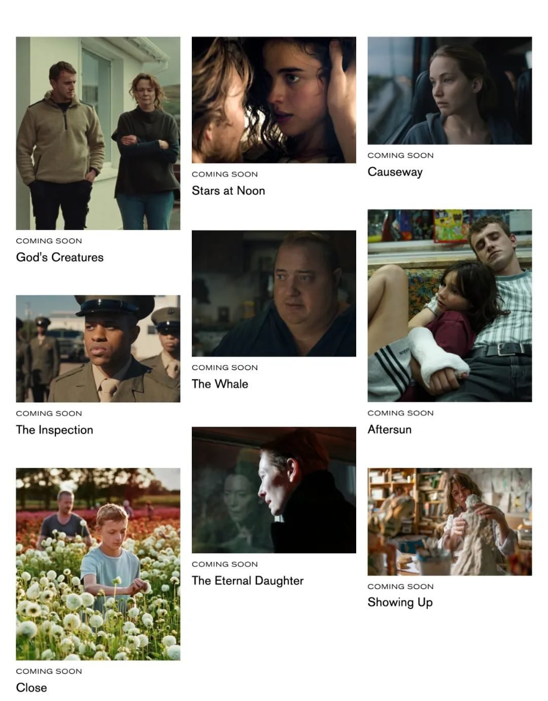 ▲ A24即将上映的部分影片,不乏对人物个体或群像的细致呈现©图源于A24官网
