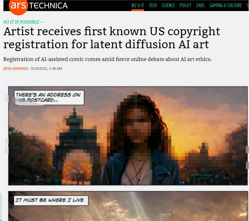 具体来说,一位名叫Kris Kashtanova的纽约艺术家获得了美国版权注册,他们的漫画小说采用了由AI生成的艺术作品,这可能是第一次。