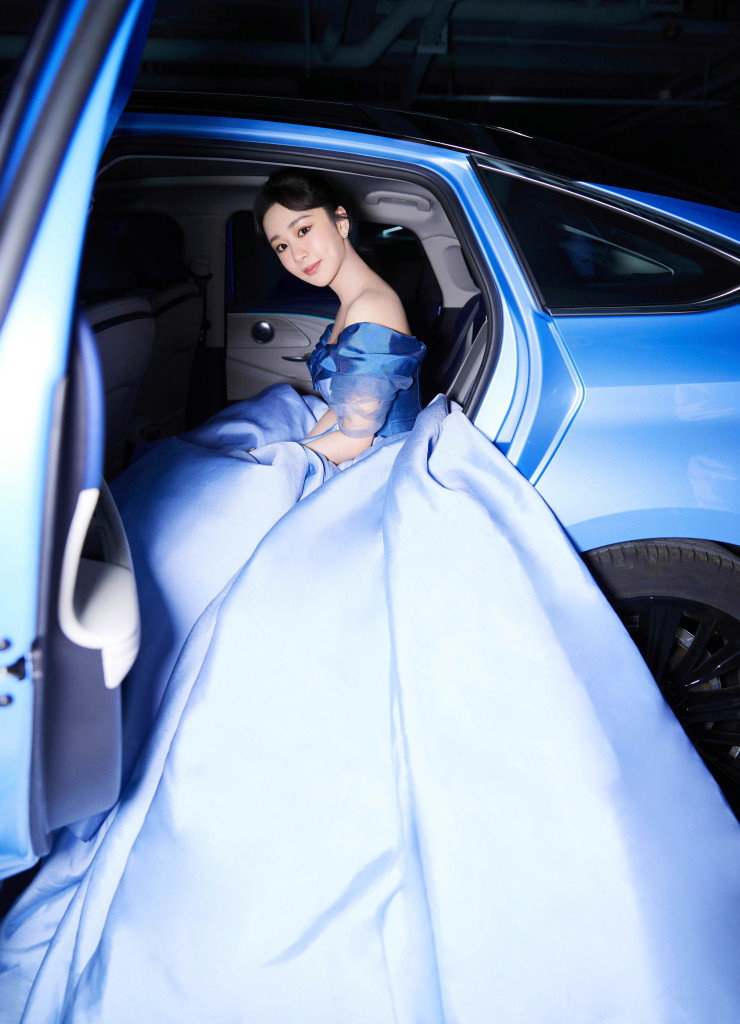 2022年9月26日,杨紫着蓝色一字肩公主裙出席活动写真释出。