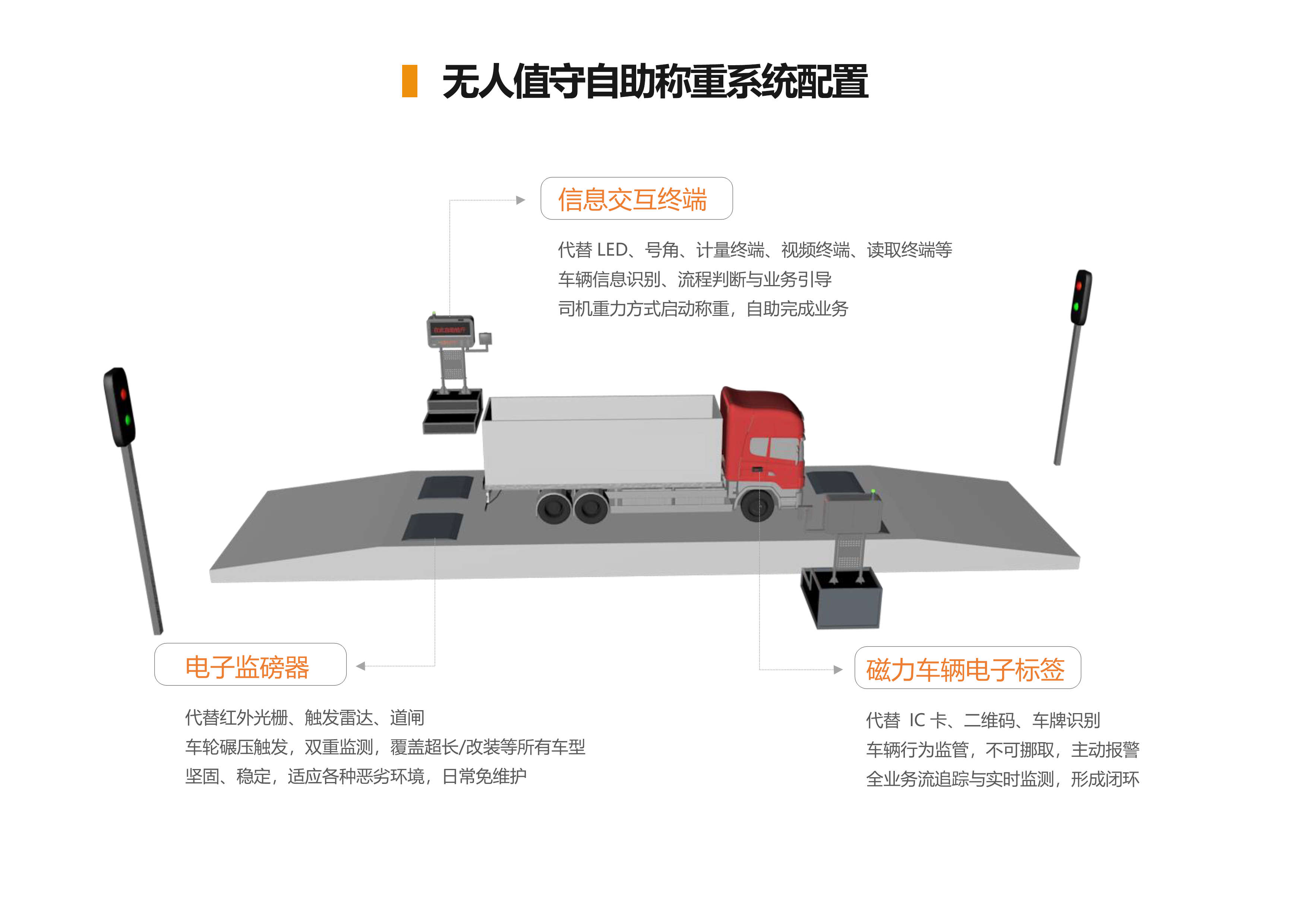 笔者通过搜索资料发现,某企业应用的“无人值守自助称重系统”就采用了一种“无卡触发”方式,即车辆上磅时,通过专用设备读取车身上的标签,核验车辆身份及业务进程,系统自动引导并确定司机下车后,自动启动称重,无需任何操作。经笔者深度了解,该方式的标签为“磁力车辆电子标签”、专用读取设备为“信息交互终端”,主要为企业解决并达到了如下管理效果: