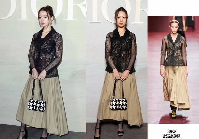 巴黎秀场头排,郎朗的妻子吉娜爱丽丝也盛装出席,穿了一套dior2022秋冬系列的套装出席。