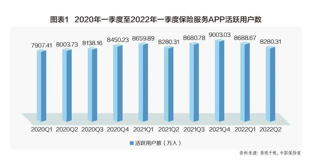 与此同时,《办法》要求保险机构在2021年5月1日前,完成制度建设、营销宣传、销售管理、信息披露等问题整改。为适应新业务监管办法,保险服务APP活跃用户相应回落。2021年二季度,保险服务APP活跃用户规模进一步回落至8280.31万,较上一季度下降4.7%(图表1)。
