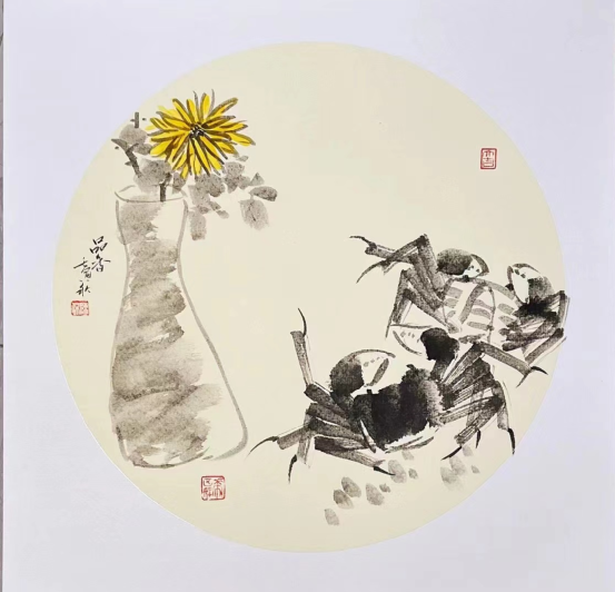 金秋菊黄蟹正肥 持螯饮酒滋筋髓。为什么画家喜欢画河蟹?手持大螯的河蟹与菊花一起,寓意“和谐花开”,在明清科举中,常寓意“解元”。螃蟹的两个大夹子,还有抓财的意思,故螃蟹自古以来兼有金榜题名和横财就手的双重瑞兆。