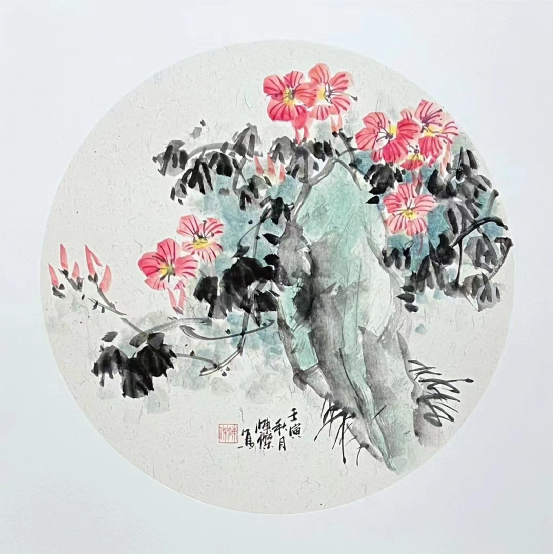 中国花鸟画有自然与人文的文化信息,并具有相对的独立性和自然美。当代著名画家陈杰先生深明这一点,他将团扇的绘画技法与中国美好寓意理念统一起来,注重传统文脉尤其是对小写意精神的梳理与解悟,以文化积淀而逐渐造就自我练达的人文心性,从而调动笔墨,写象造境,进而以其颇具标识度的审美意象为载体绘胸中意气。