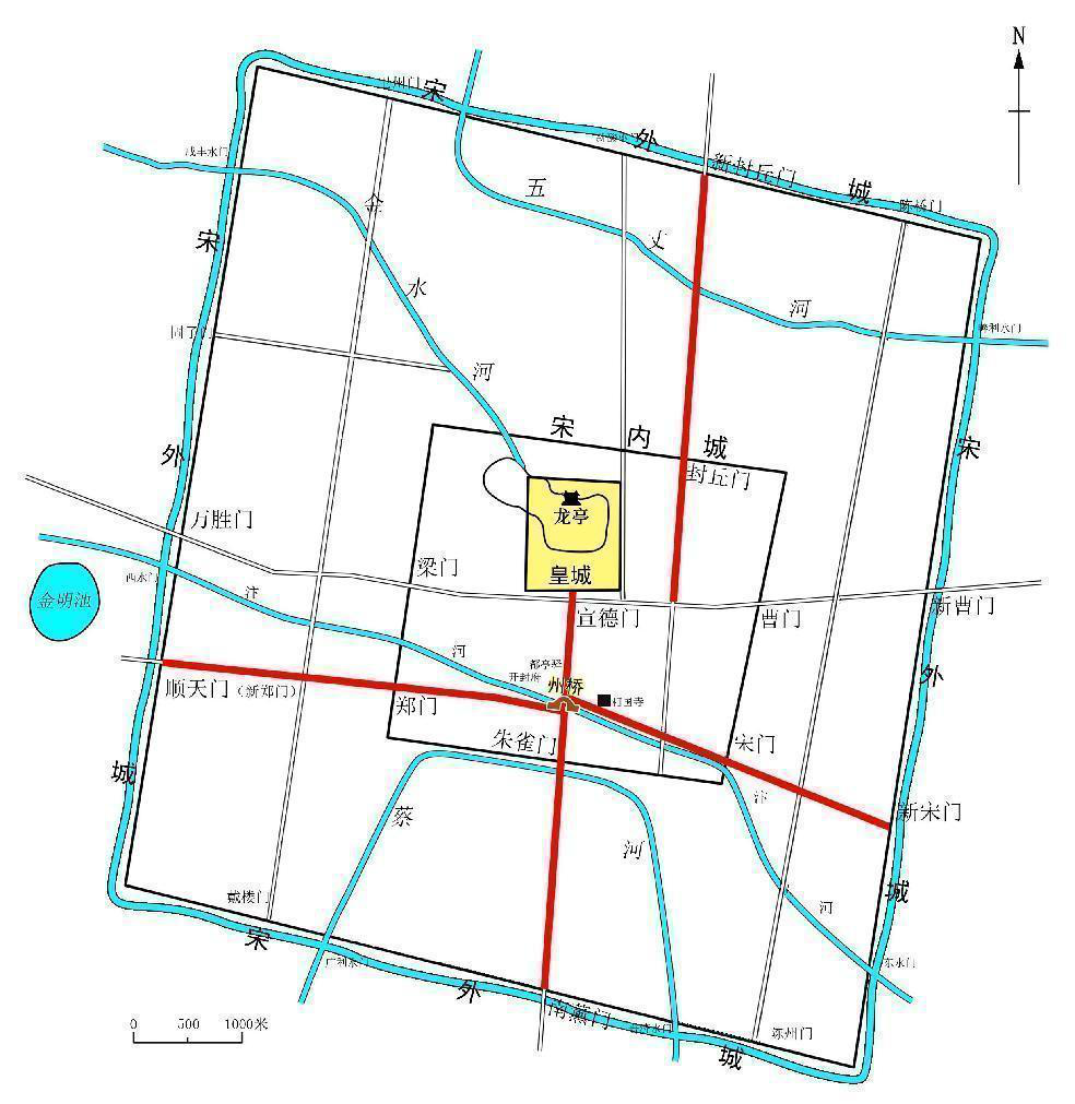 北宋东京城州桥遗址位于今开封市中山路与自由路十字路口南约50米,是北宋东京城中轴线御街与大运河(汴河段)交叉点上的标志性建筑。州桥始建于唐代建中年间(780—783年),因在州之南门故名“州桥”,五代称“汴桥”,宋代改称“天汉桥”,因“正对大内御街”,又名“御桥”。