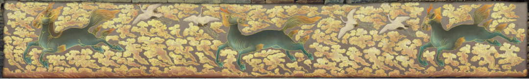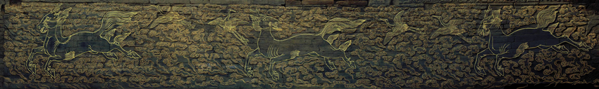 整个石壁每组为一匹海马和两只仙鹤环以祥云组成,长度约为7.5米。整个石壁推测共有4组图案,长度约为30米。