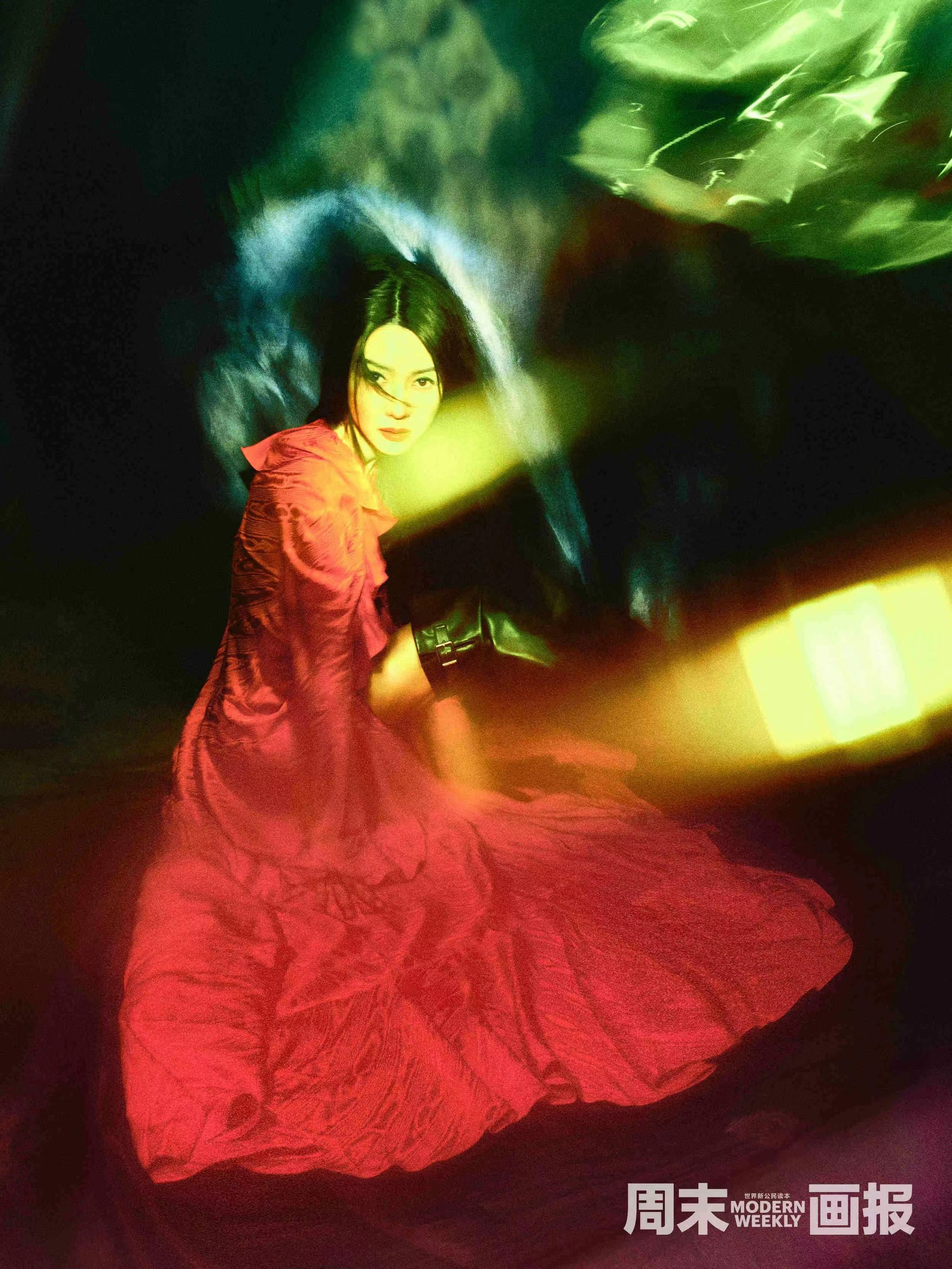 释出的大片中,薛凯琪以不同造型出镜,于旖旎光影中诠释奇幻艺术大片,打破既定印象。绿色波点长裙搭配黑长直发,温柔凌厉,是美艳又动人的港风女郎。丝绒抹胸长裙勾勒曼妙身材,花朵装饰更显女性优雅。光影交错,色彩梦幻,她一袭红裙妩媚,垂眸沉思,氛围感十足。