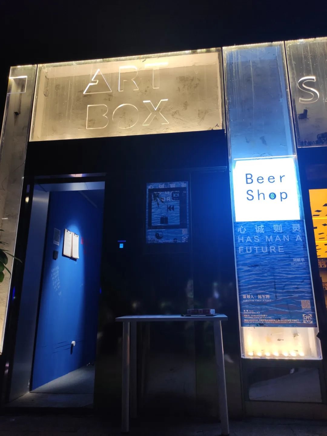 9 月 3 日下午 3 点,刘耀华个人项目《心诚则灵》在 SAMAR 艺术黑匣子开幕,随后,艺术家、策展人、特邀嘉宾、空间创始人以及多位观众进行了现场讨论。这次展出,艺术家将只有 4 平米左右的沿街展厅布置成一个充满海浪声音的蓝色空间,用贴在墙角的一句话语向人们发问:“面对这个世界,你将许下怎样的愿望?”,很多白色的签字笔散落在各个角落,靠墙陈列着一个看似展台却能塞进现金的木箱,观众可以在观看完墙上的项目简介后,用扫码和现金的方式投币,然后在墙上写下来自内心深处的愿望。而这些募集来的钱最后会被刘耀华兑换成硬币丢进茫茫大海之中。
