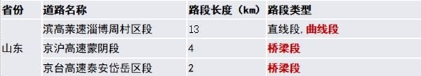 1日至2日,(山东省)京沪高速蒙阴段、济广高速菏泽市段、京台高速泰安岱岳区段、滨莱高速淄博周村区段、京台高速枣庄薛城区段;(河南省)G341安阳城区南郊段、S101郑州黄河公路大桥段。共7条高影响路段受降雨影响交通安全管控气象风险较高,且部分路段道路类型为桥梁或曲线段,对交通安全影响较大。