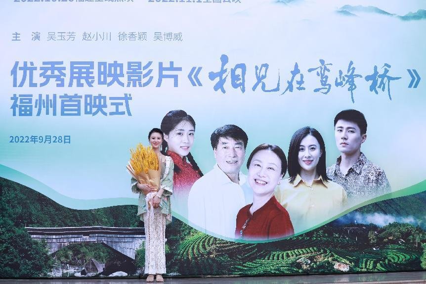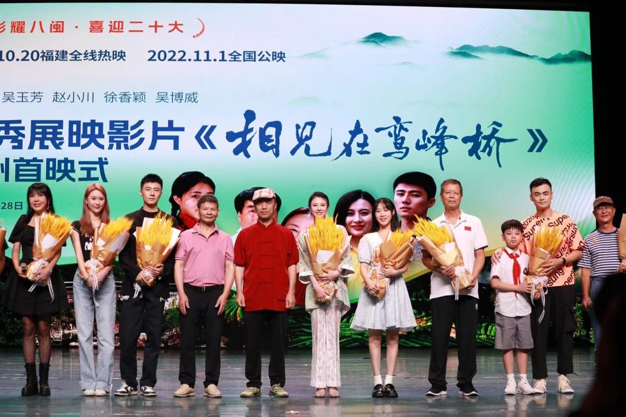 9月28日,由福建省委宣传部、省电影局指导的“福影耀八闽,喜迎二十大”优秀展映影片《相见在鸾峰桥》首映式在福州大戏院举行。福建省委常委、宣传部部长张彦,全国政协委员雷春美,老同志郑义正、陈增光、叶继革参加首映式。该影片由衣洪波执导,徐香颖(曾用名:徐坤妍)、吴玉芳、赵小川、吴博威领衔主演。