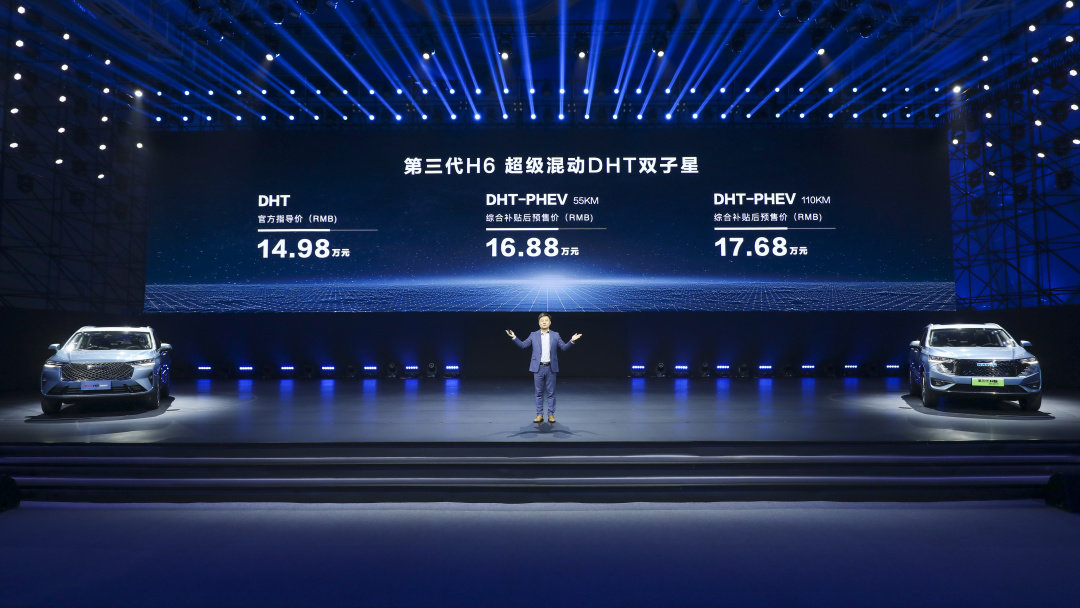 长城哈弗为第三代H6 DHT-PHEV准备了三款配置型号,它们的NEDC纯电续航分为55km和110km两档,综合补贴后售价15.98万~17.38万元。这一价位比先前预售阶段降低大约1万元。