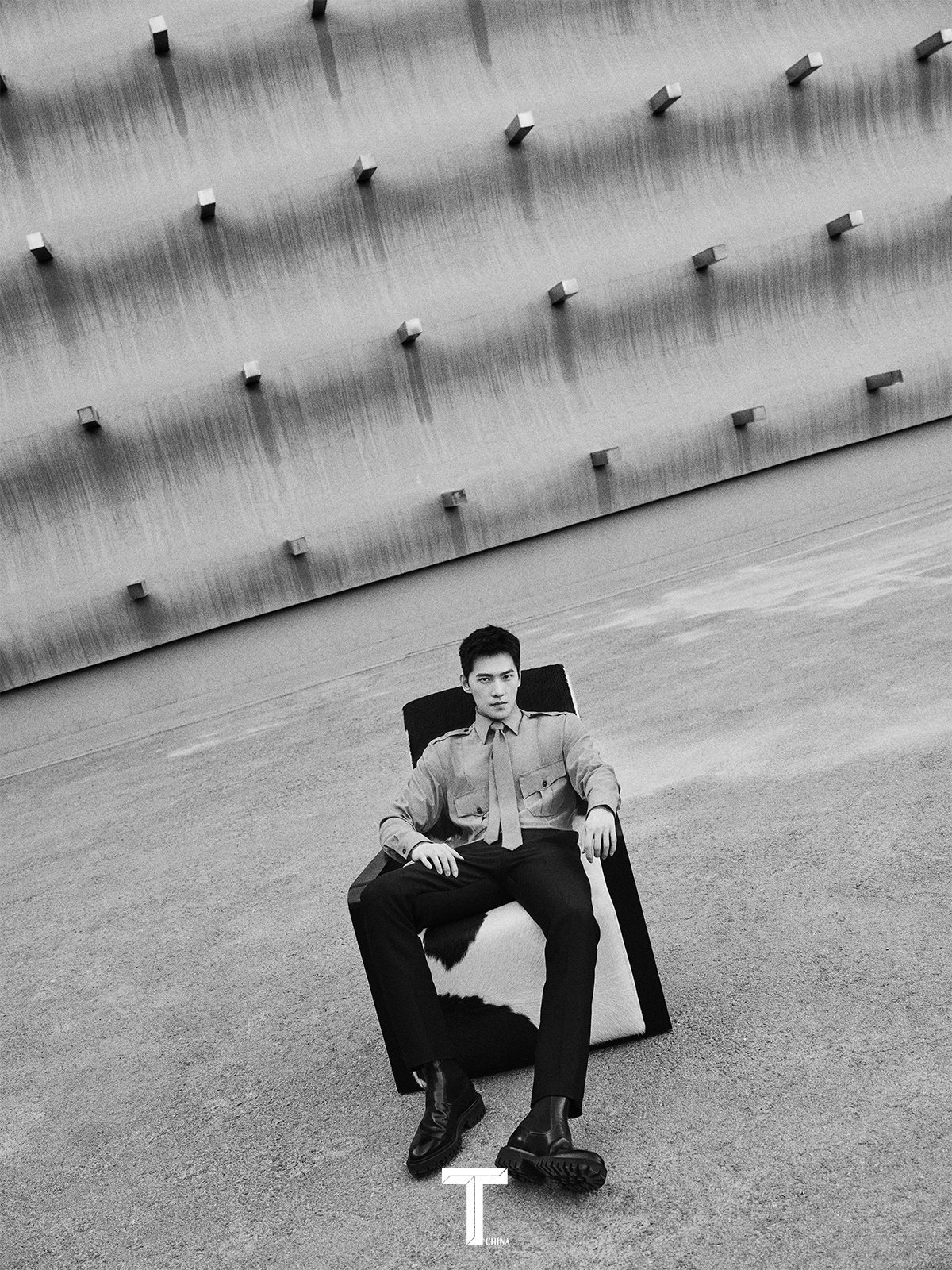 在这组封面大片中,杨洋身着dunhill2022秋冬系列千鸟格西装外套,在烈日下的空旷室外,影子向身后延伸,形成了稳固的三角构图,单手插兜站立的杨洋直面镜头,用锐利的眼神诠释着杂志本期的主题——“新青年”。
