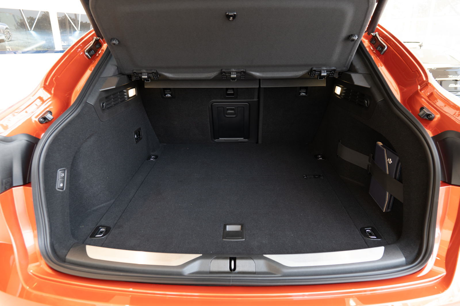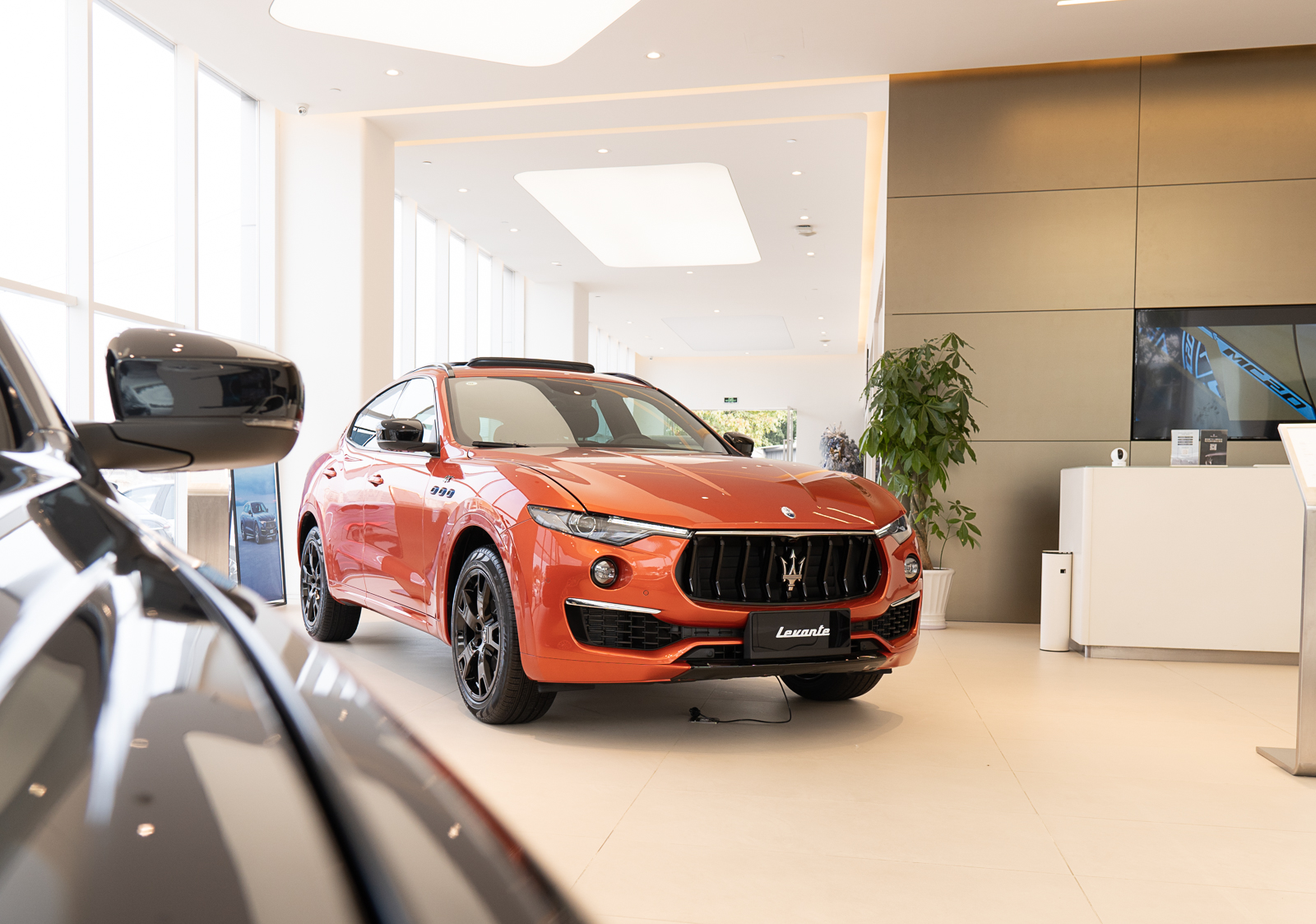 Levante GT锋芒版首发车型最显著的特色,就是专属的“热情橙“车身配色。和版常见的蓝、灰色比较,橙色显然更有地中海的热情和阳光。与车身色调相得益彰的是曜黑GT套件,包括进气格栅、后视镜、车窗饰条、轮毂、排气等都换成亮黑色套件,整体看上去非常有运动氛围。