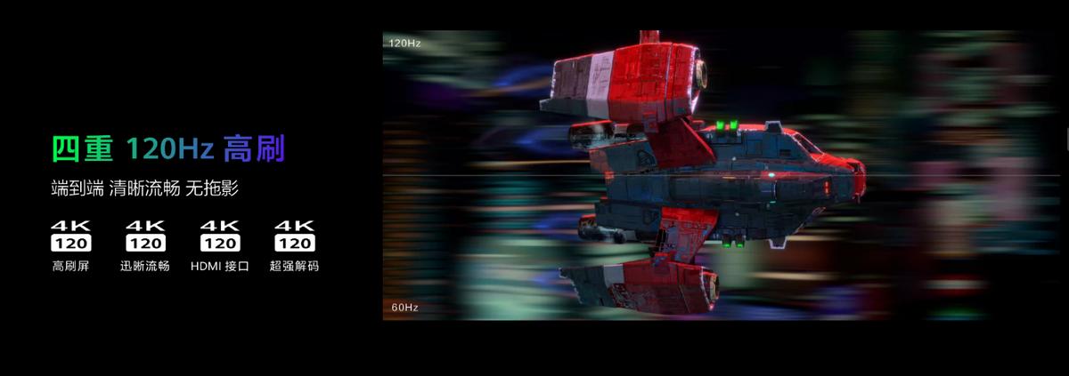 游戏中的运动场景非常多,如果屏幕的刷新率不够,特别容易出现拖尾、重影等现象。华为Vision智慧屏 Z 电竞版支持120Hz刷新率,满足次世代主机游戏的高刷新率需求。它还有迅晰流畅技术,通过侦测背景、前景、运动轨迹、形变等因素,对视频画面进行像素级运动估计和多帧补偿,从而使画面更流畅。
