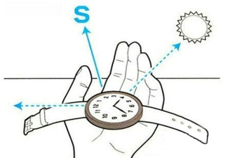 方法一:将手表平置,时针指向太阳,时针与12时刻度平分线所指的方向即是南方。