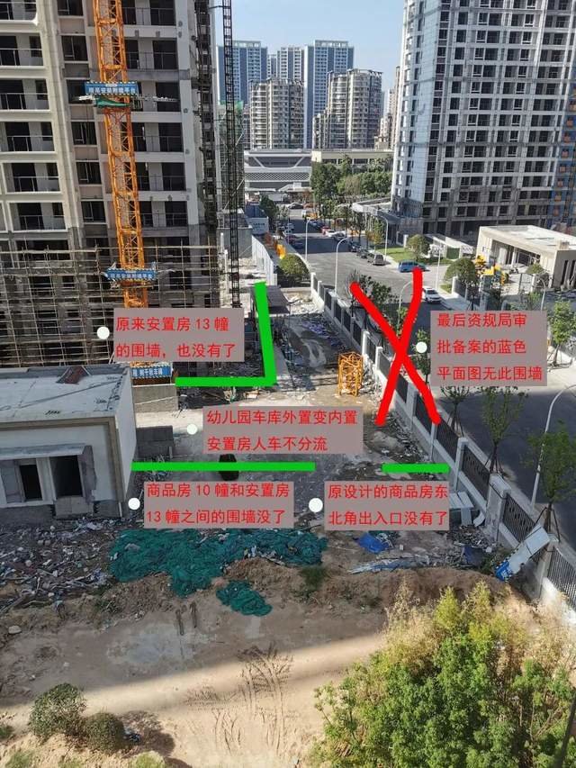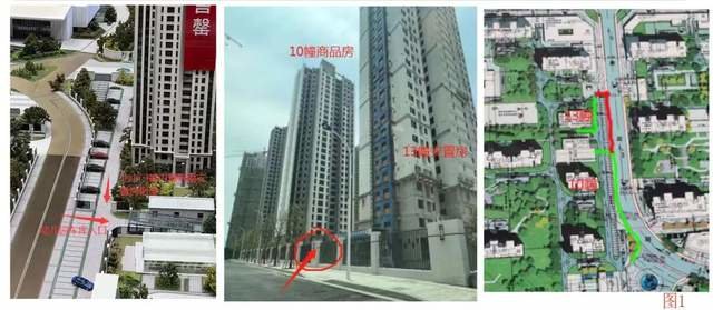 此前,在香开万里项目售楼处沙盘的展示中,项目二组团商品房 10 幢与安置房 13 幢与交界处围墙存在 L 型拐角,拐角处设置商品房人行北出入口,同时此处还将设置幼儿园地库入口。