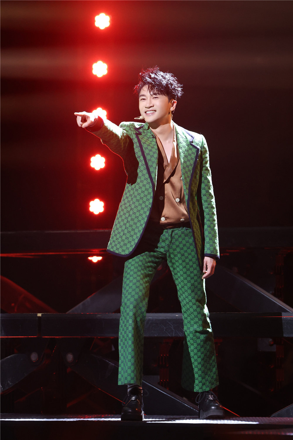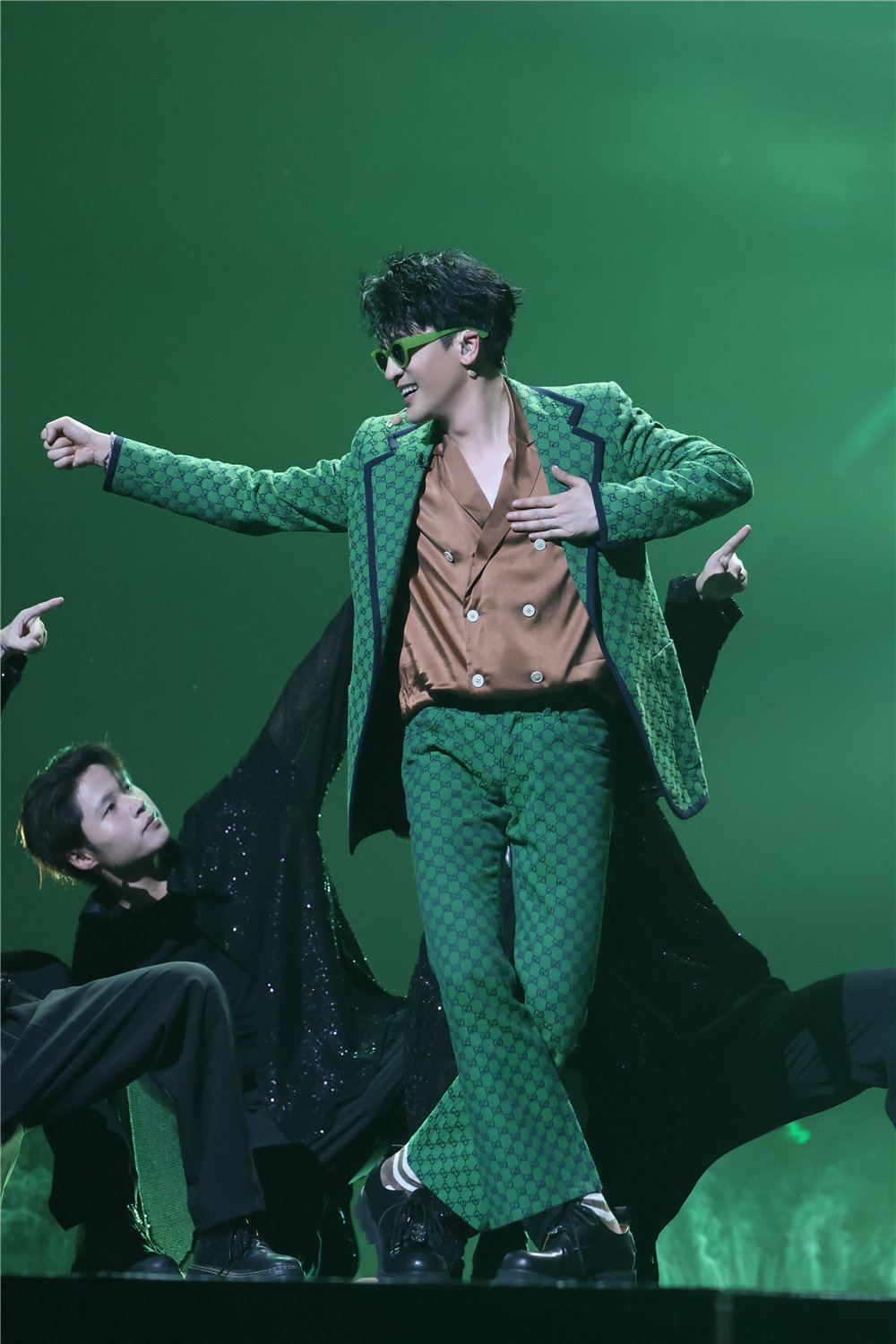 复古迪斯科的造型搭配魔性洗脑的舞蹈,在现代科技感的舞台上,苏有朋身穿绿色复古外套把打碟、擦玻璃等动作融入舞蹈中,点燃现场气氛。谈及创作想法,苏有朋希望借歌呼吁大家不要因为有社交软件而忽略了跟周围朋友的日常交流。