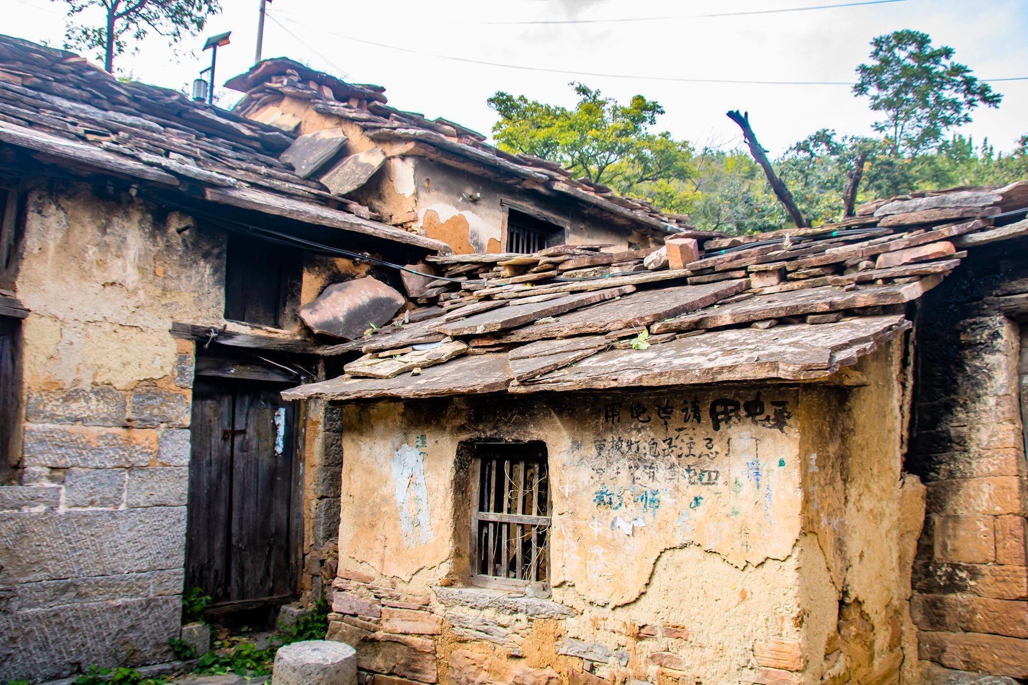 房顶上,薄薄的石板层层叠加,显得杂乱无序,却有种莫名的原生态美感。天长日久,淡黄色的土墙已经剥落开裂,在阳光照射下,淡黄变成土黄,有几分温暖,也有几分记忆中家的感觉。