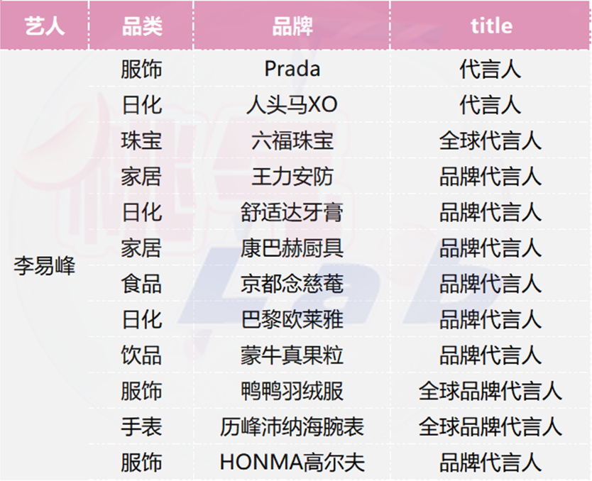 以李某峰为例,他原本的12个代言和今年五月刚新增的一个代言,像PRADA、巴黎欧莱雅、六福珠宝、京都念慈菴、蒙牛真果粒等品牌,在寻找下一任这件事上,必定万分小心。