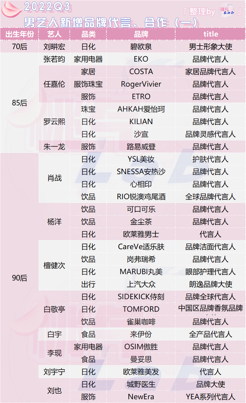 从Q3的整体表现看,品牌市场恢复了活力,艺人代言也支棱起来了。