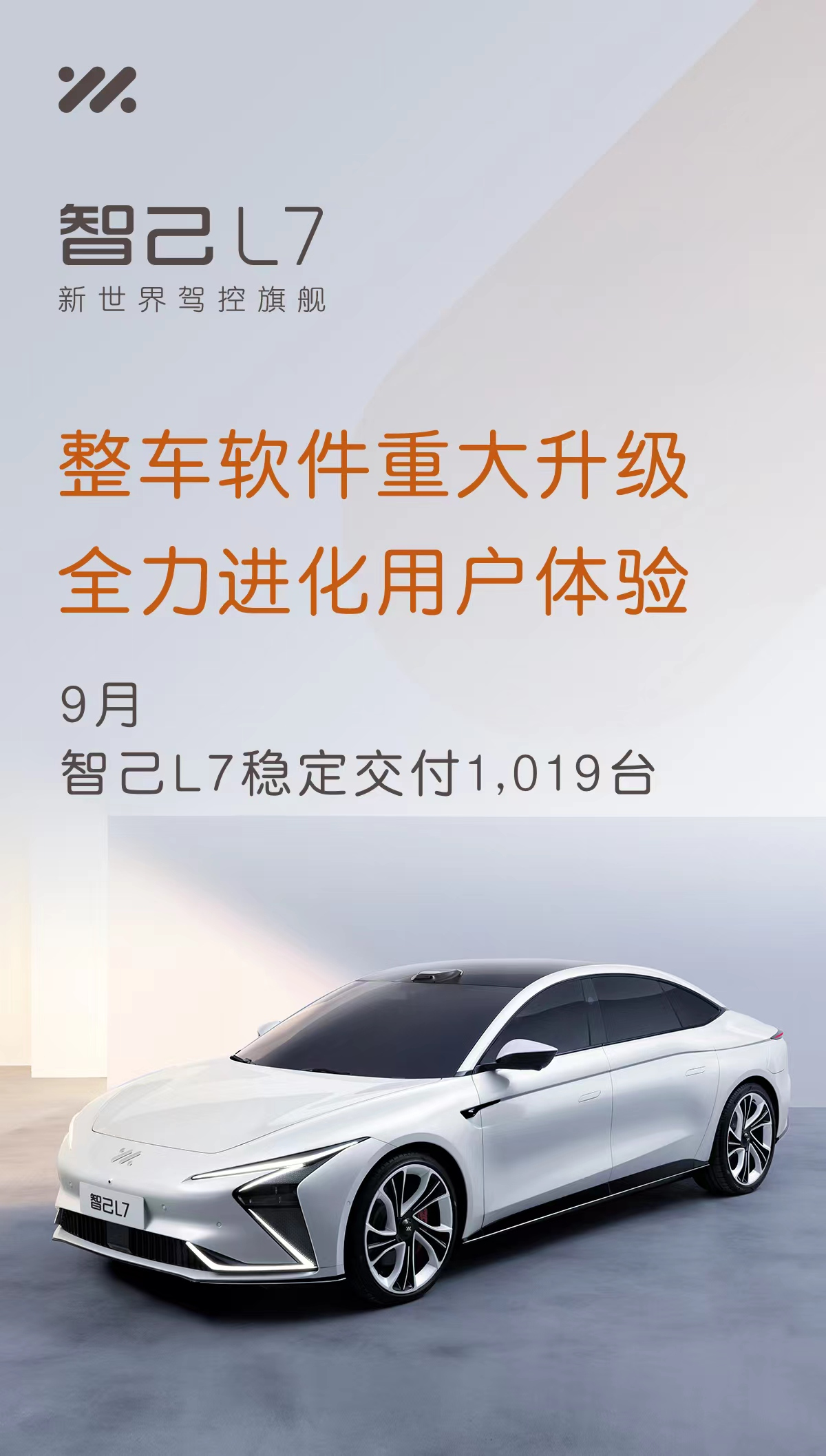 在9月份,“新世界驾控旗舰”智己L7单月交付再次破千台;自启动全国交付以来,实现连续环比增长,持续稳定在中大型豪华纯电轿车新赛道中的增长态势。截止9月30日,智己L7累计交付3,077台。