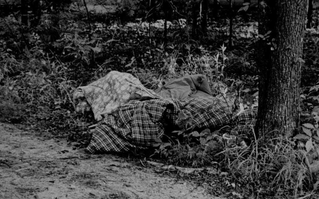 鲍勃·赫兹当时是唯一一名获准进入案发现场并拍照的记者,他用相机记录下了女童被掳走后血迹斑斑的帐篷,记录下她们被遗弃在林地的位置,记录下睡袋打开后露出幼小的尸体的惨象——其中一名女童米歇尔瞪大了眼睛,全身赤裸,脸旁有几只苍蝇一直在打转。