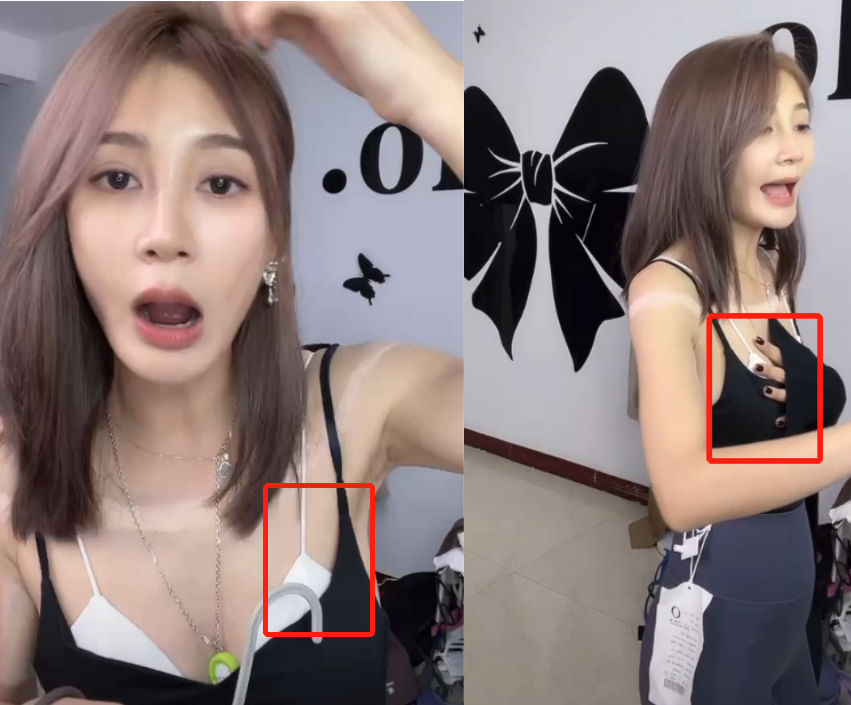 而直播中唐菀为大家介绍自己身上的这款吊带,或许是为了防止走光,唐菀的吊带里面还穿了一件白色内衣,由于吊带的领口太低,白色内衣看起来尤为明显,肩带也露了出来,看起来略微有些不协调。而唐菀看起来真的很担心这件衣服会走光,靠近镜头时就捂住自己的胸口,想必是在直播这一块相当敬业。