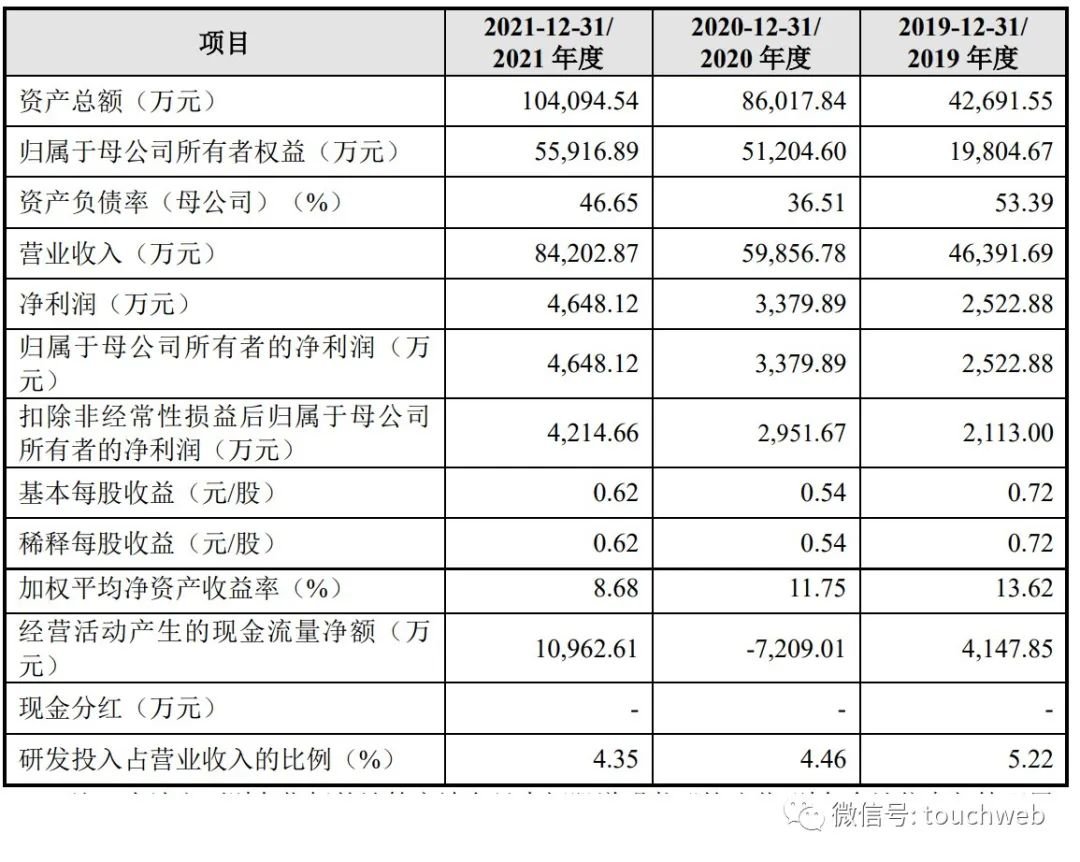 招股书显示,贝迪新材2019年、2020年、2021年营收分别为4.64亿元、6亿元、8.42亿元;净利分别为2522.88万元、3379.89万元、4648.12万元;扣非后净利分别为2113万元、2951.67万元、4214.66万元。