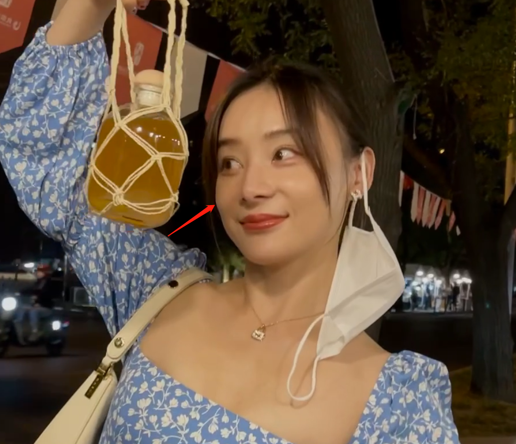 再看袁姗姗私下的生活照,妆容比上节目要淡很多。在没有浓妆加持的前提下,卧蚕也非常明显,鼻子也很挺,鼻尖还很翘,就是脸颊肉很鼓,看起来有医美过度的痕迹。
