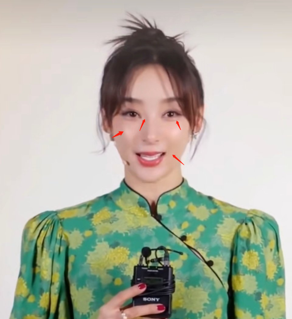 能当女明星的五官基本都不会特别差,袁姗姗这个动态图变形可能也有滤镜的因素。那么再看看静态图,脸看起来又宽又大,朝着饼脸趋势发展,而视频中明明是瘦长脸。眼周状态和动态差不多,笑起来特别僵硬,有一种“笑不出来的”的感觉,法令纹也很深。