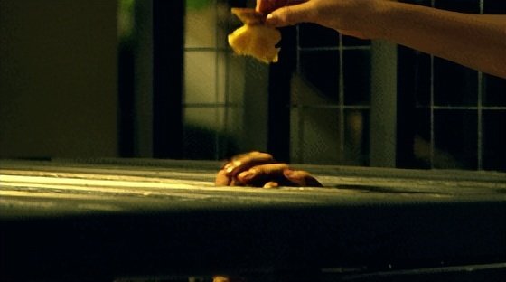 剧中曾勇有一场曾勇被关在笼中的戏,他像狗一样被人投喂,饿了捡地上的面包吃,渴了就地上的脏水,人物的身体和意志力处于崩溃的边缘。