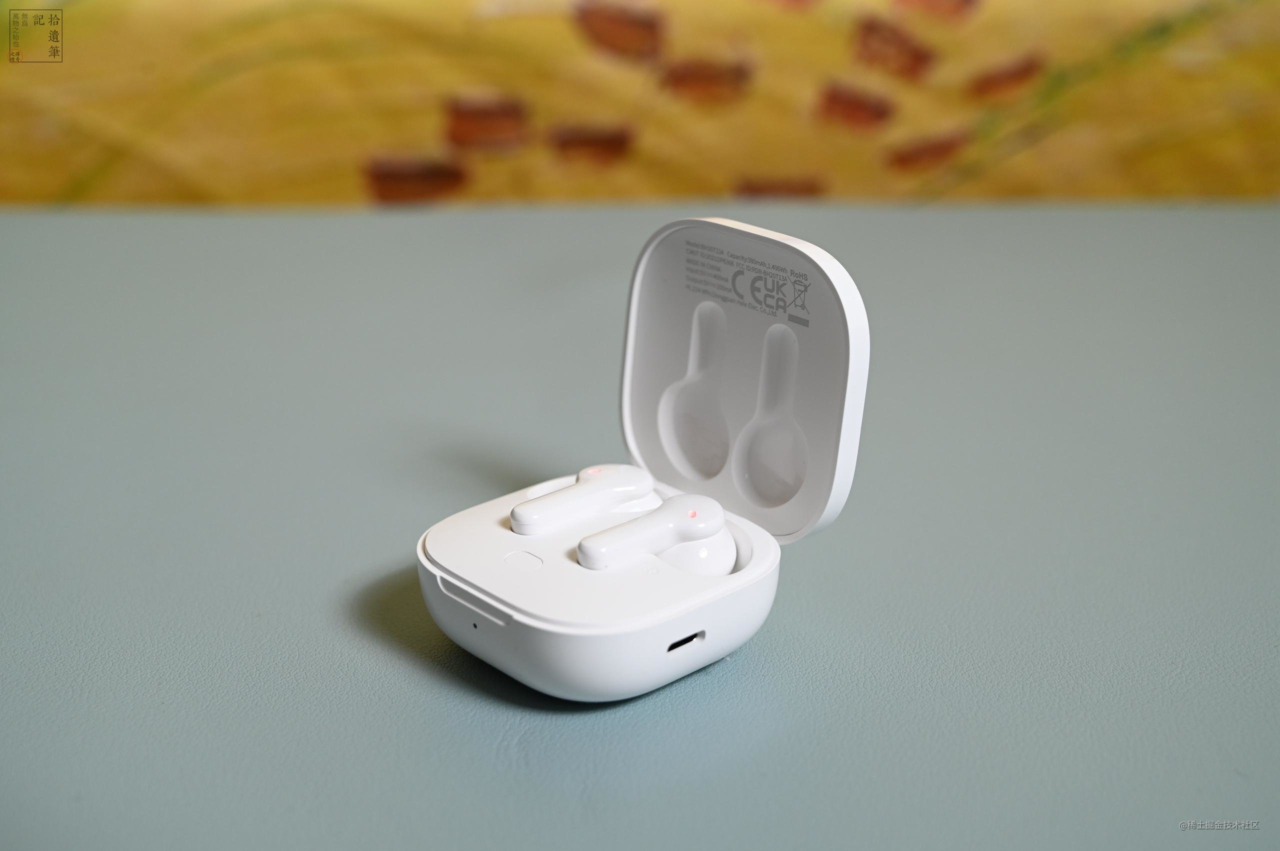 打开充电盒后,可以看到QCY T13耳机做得十分小巧,这款耳机表面也是漆面,手感和质感都很到位。日常工作中,因为这款耳机支持单只使用,所以我习惯戴上一只耳机,方便接打电话,或者是参加一些在线会议,一般一只耳机用上半天也没问题,电量完全足够。