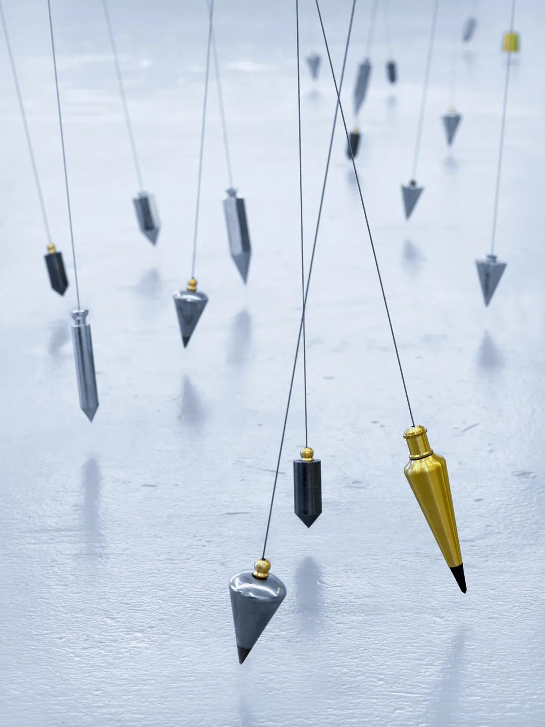▲ 塔提亚娜·图薇,《指向无穷的750个点》,2009,铅垂线,磁铁,金属,尺寸可变,图片由红砖美术馆提供