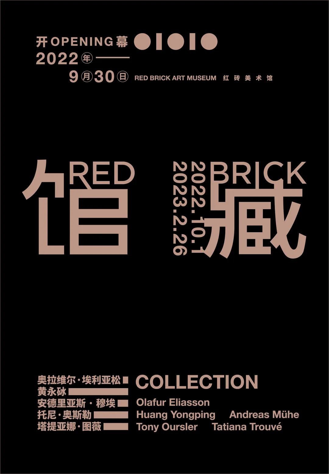 2022年9月30日,红砖美术馆推出了专题收藏展,精选五位艺术家奥拉维尔·埃利亚松、黄永砅、安德里亚斯 · 穆埃、托尼·奥斯勒、塔提亚娜·图薇的作品,展览将持续到2023年2月26日。