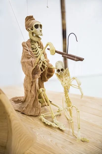 ▲ 《马戏团》局部,黄永砅,2012,木头、竹子、动物标本、树脂、钢、线和布,841.1×1000.1×1000.1cm,图片由红砖美术馆提供