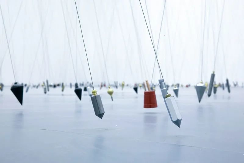 ▲ 塔提亚娜·图薇,《指向无穷的750个点》,2009,铅垂线,磁铁,金属,尺寸可变,图片来源:张宇凌