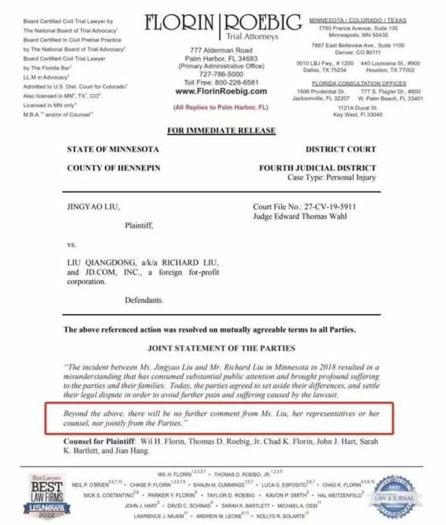 随着刘婧尧和刘强东最终达成和解,这件拖延了四年的纠纷也终于画上了句号,对于刘婧尧而言,在胜算很小的情况下,已经得到了一个最好的对价;而对于刘强东而言,结束这场四年的噩梦,腾出精力把事业和家庭搞好,同样更有意义。