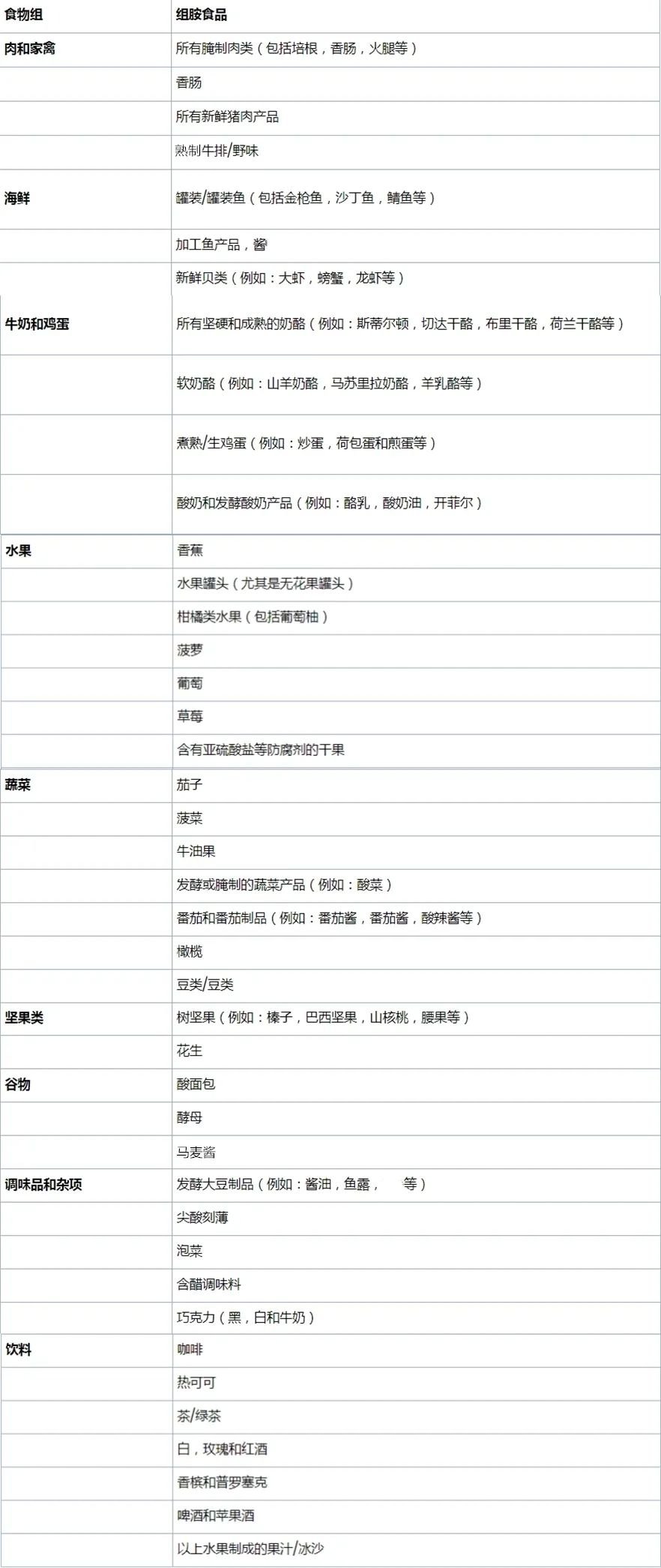 🔺组胺释放性食物和高组胺食物列表,仅供参考