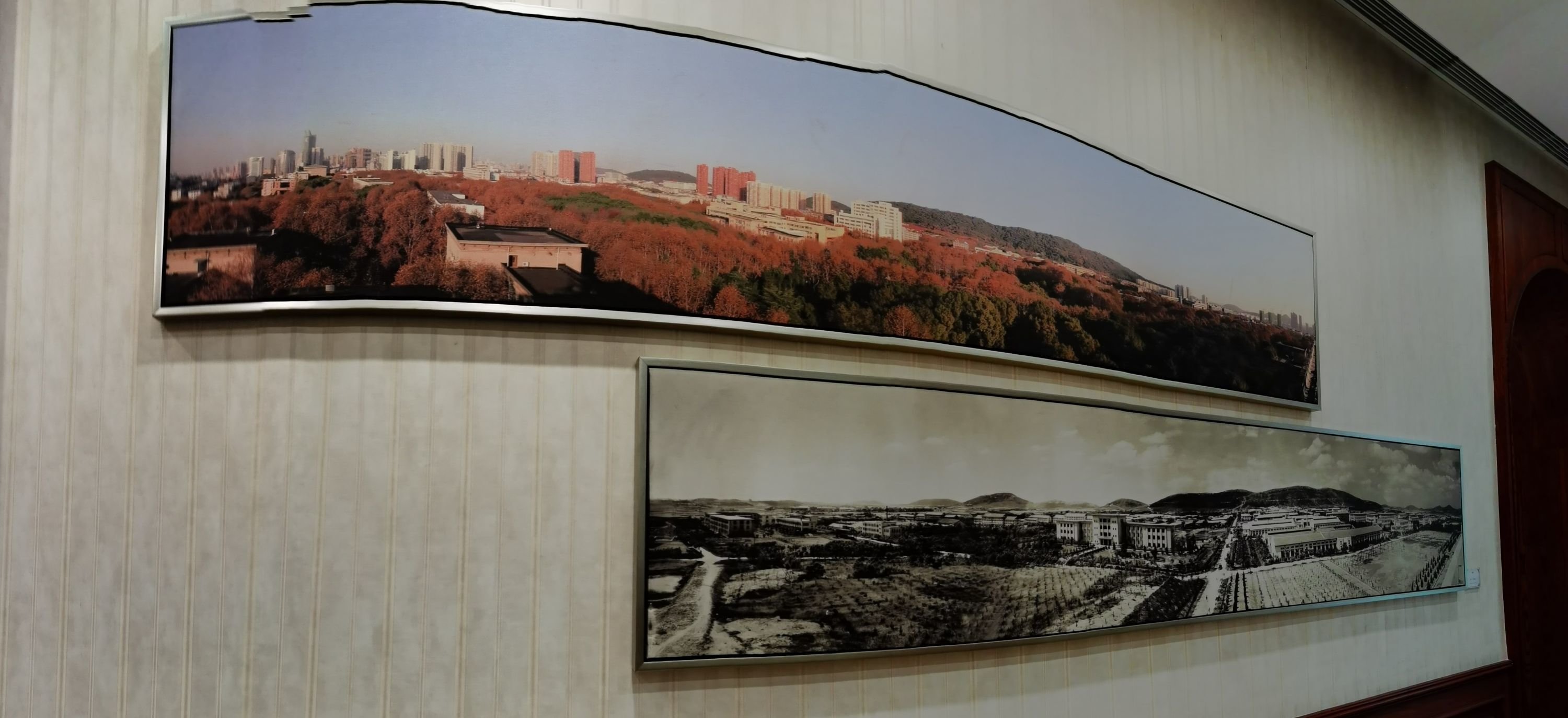 两幅同一视角的照片,见证一座“森林大学”的成长史。10月5日,在华中科技大学绿园餐厅,并排挂着的两幅老照片引起了前来参加校庆的校友们的注意。相隔52年的这两幅照片都是从喻家山顶俯瞰整个华中科技大学,楼房依旧,林木迥然,一张小苗初栽,一张绿树成荫,形成鲜明对比,诉说着华科大70年办学史,既树木,也树人。