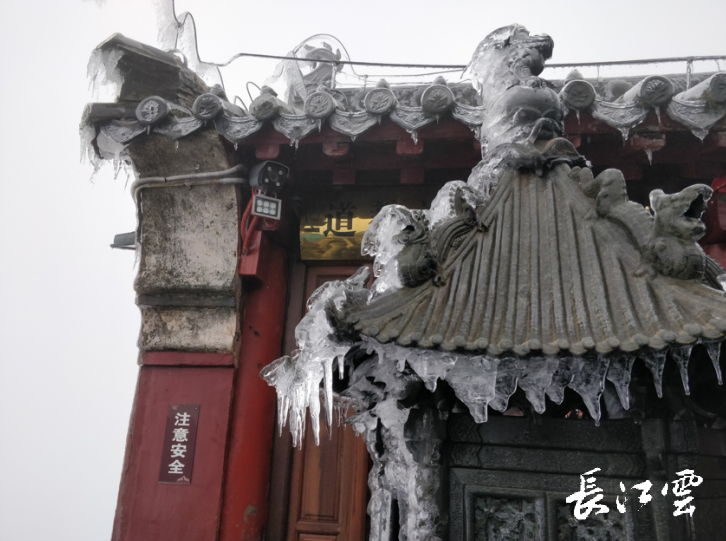 受近日强冷空气影响,十堰武当山景区温度大幅下降,气温达到了零下5摄氏度,今天(10月6日)金顶景区迎来了入秋后的冰挂和雾凇奇观。冰雕玉砌、晶莹闪烁的雾凇缀满枝头、屋檐,宛如冰雪世界!