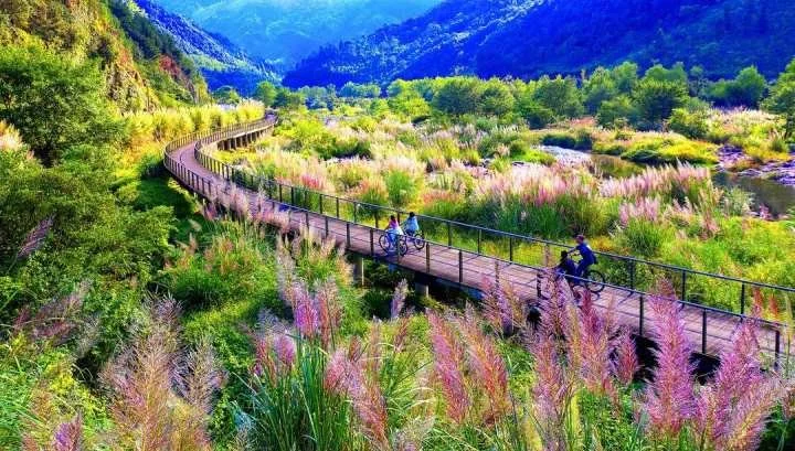 沿着苕溪,踩车遛河,西险大塘两岸绿意环绕,生态优美。沿路苕溪两岸多生芦苇,待到深秋之后芦花飞扬,沿着蜿蜒的苕溪绿道,看河水缓缓流淌,将大自然尽收眼底。