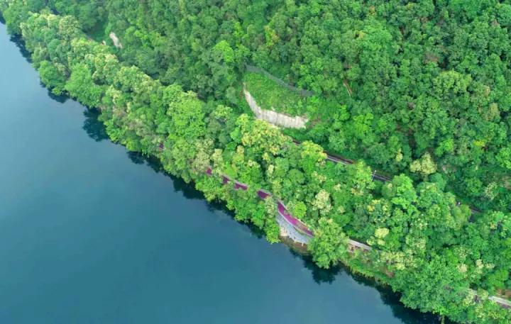 三江两岸·建德绿道东起乾潭镇,西至梅城严东关,跨越了富春江国家森林公园250平方公里的无人区,全长18公里。绿道地处建德七里扬帆景区核心区域,一边是山,一边是水,空气清新,环境优美,植被茂密,骑行是一种享受。