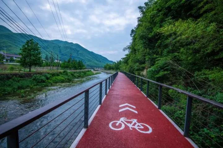 百丈滨溪骑行道沿着百丈溪,途经溪口、泗溪、百丈、半山四个村,总长12.1公里。绿道依托丰富的自然景观和深厚的人文历史,把百丈镇美丽乡村和沿途的旅游资源串联整合起来,是一条徜徉在绿水青山间的生态公益道、和谐发展道。