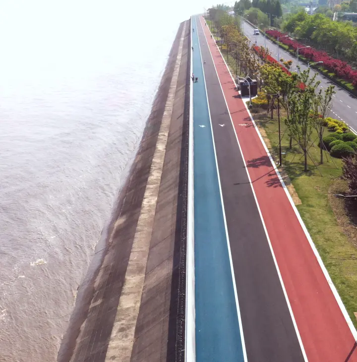 钱塘江滨绿道起于聚首路,至江东大桥,全长约16.2公里。骑行在绿道上,你可以尽情领略美好的自然风光和诗意的乡村景致。这里融休闲、观景、娱乐和生态于一体,形成了可走、可跑、可骑的慢行系统,是人们休闲的好去处。