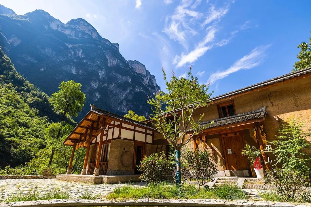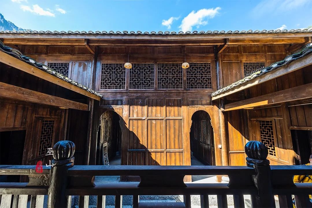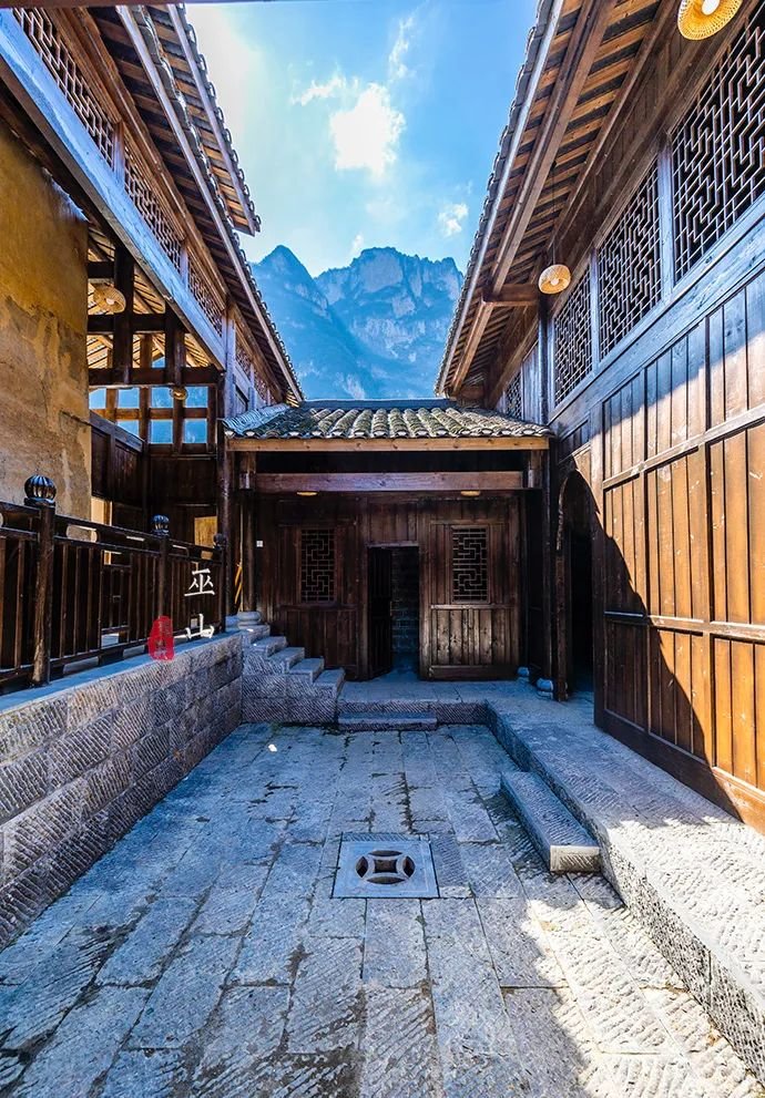 下庄院子木制的门窗、高高的传统挑檐,与自然融为一体。