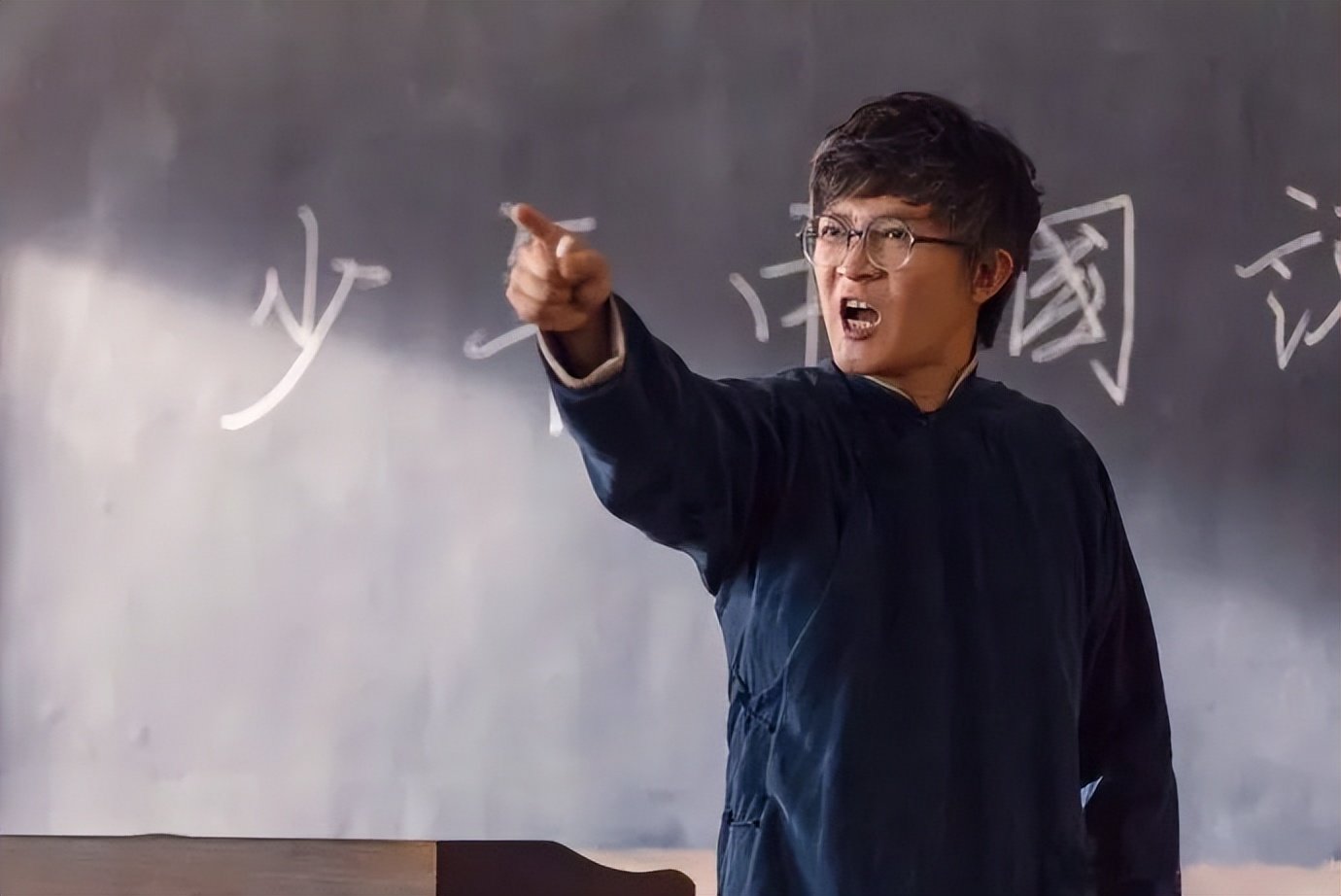 观众能看到,他的头发经常乱糟糟,还有不少白发,总是穿着同一件长衫、戴着一副刻板的圆框眼镜。你想啊,大家都是有今天没明天,他怎么可能有光鲜亮丽的外形?