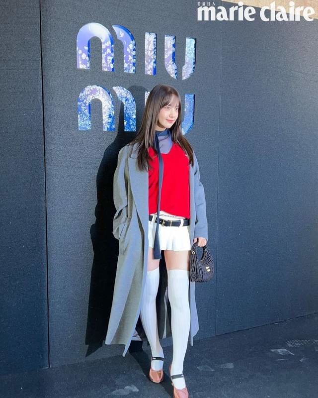 miumiu秀场,林允儿和张元英亮相。关注时尚趋势的宝子应该都有所了解,最近几季的miumiu都是低腰裙和考验腿型的长袜。